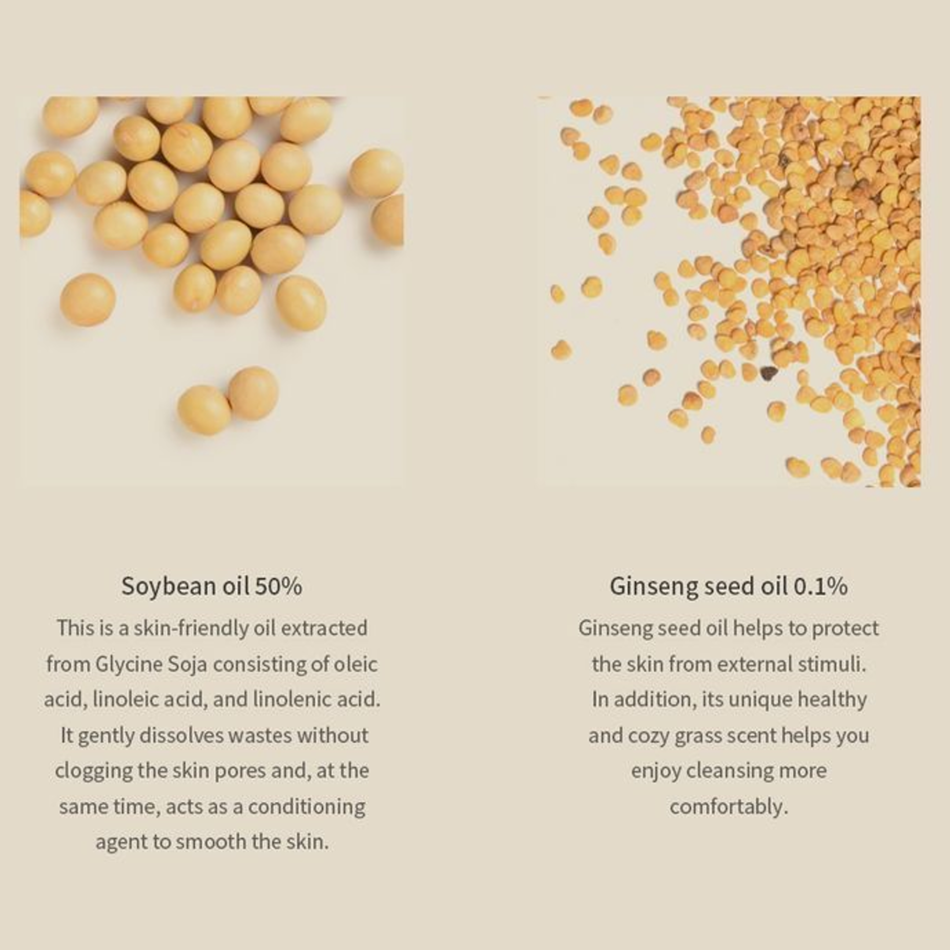 Panax Ginseng Seed Oil (0.1%): Gives off a unique, light grassy scent for a period of peaceful cleansing time. It also helps comfort and protect skin from the outside by forming a barrier.