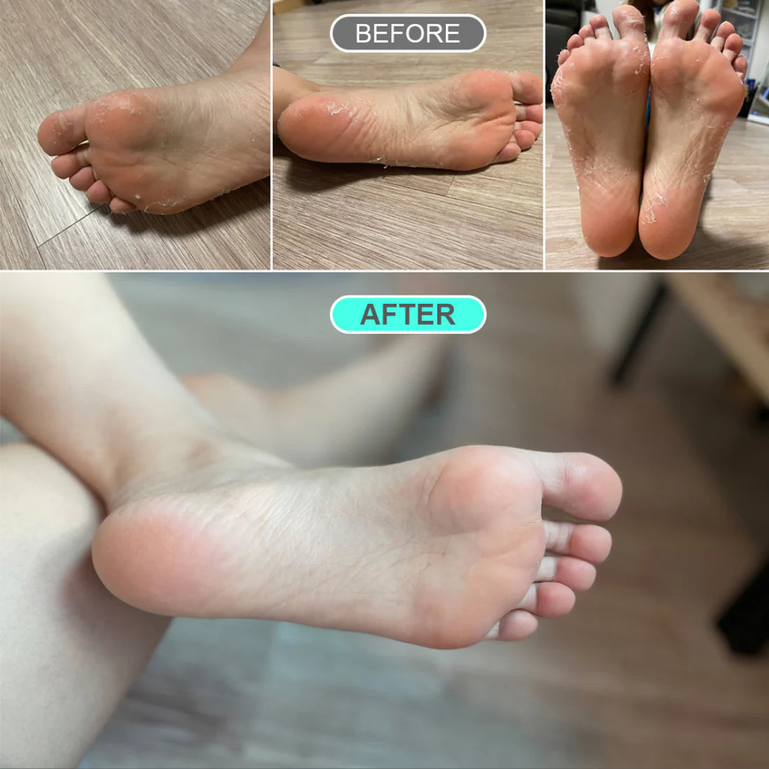 * After 3 to 5 days and on, dead skin cells will begin to scrub off, which may slowly lead to exfoliation of sole callus and heel cracks. Once the skin begins to peel, please do not tear or pluck off intentionally! It will be gone naturally over time.