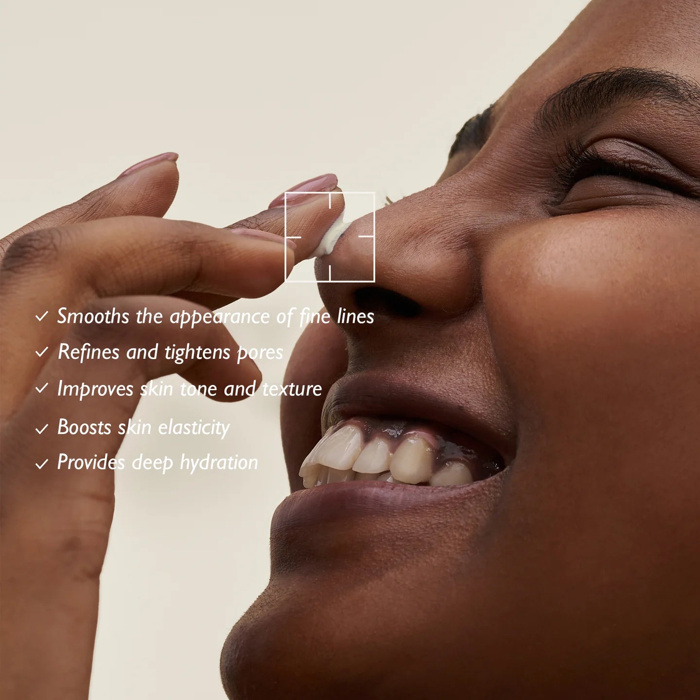 Formulated specifically for sensitive and delicate skin, this advanced retinol serum harnesses the power of microencapsulated retinol (0.08%) alongside bakuchiol-a clinically-proven, gentler retinoid alternative to address visible signs of ageing without triggering sensitivity. The dual-action formula works to refine surface texture, diminish fine lines and wrinkles, and restore even skin tone whilst preserving skin barrier health and maintaining clear pores. A nourishing blend of ceramides, sunflower seed oil, and antioxidant-rich fermented black rice extract provides deep hydration and calming support, leaving skin supple, protected, and visibly renewed. The feather-light, milky formula absorbs quickly, delivering a soft, moisturised finish making it an ideal choice for those with sensitive or reactive skin seeking effective anti-ageing support.
