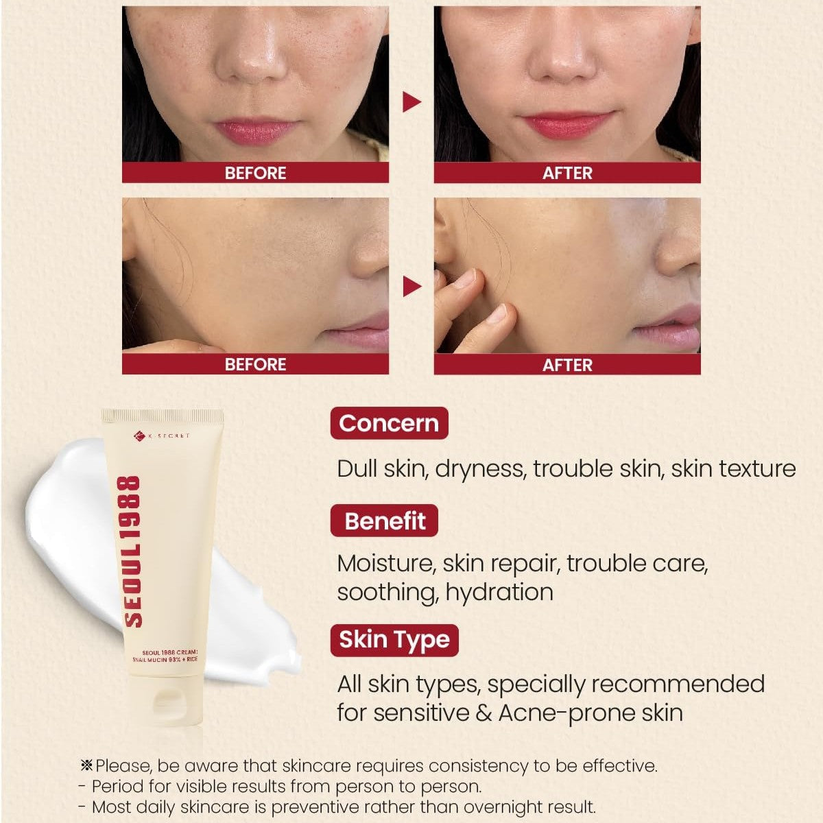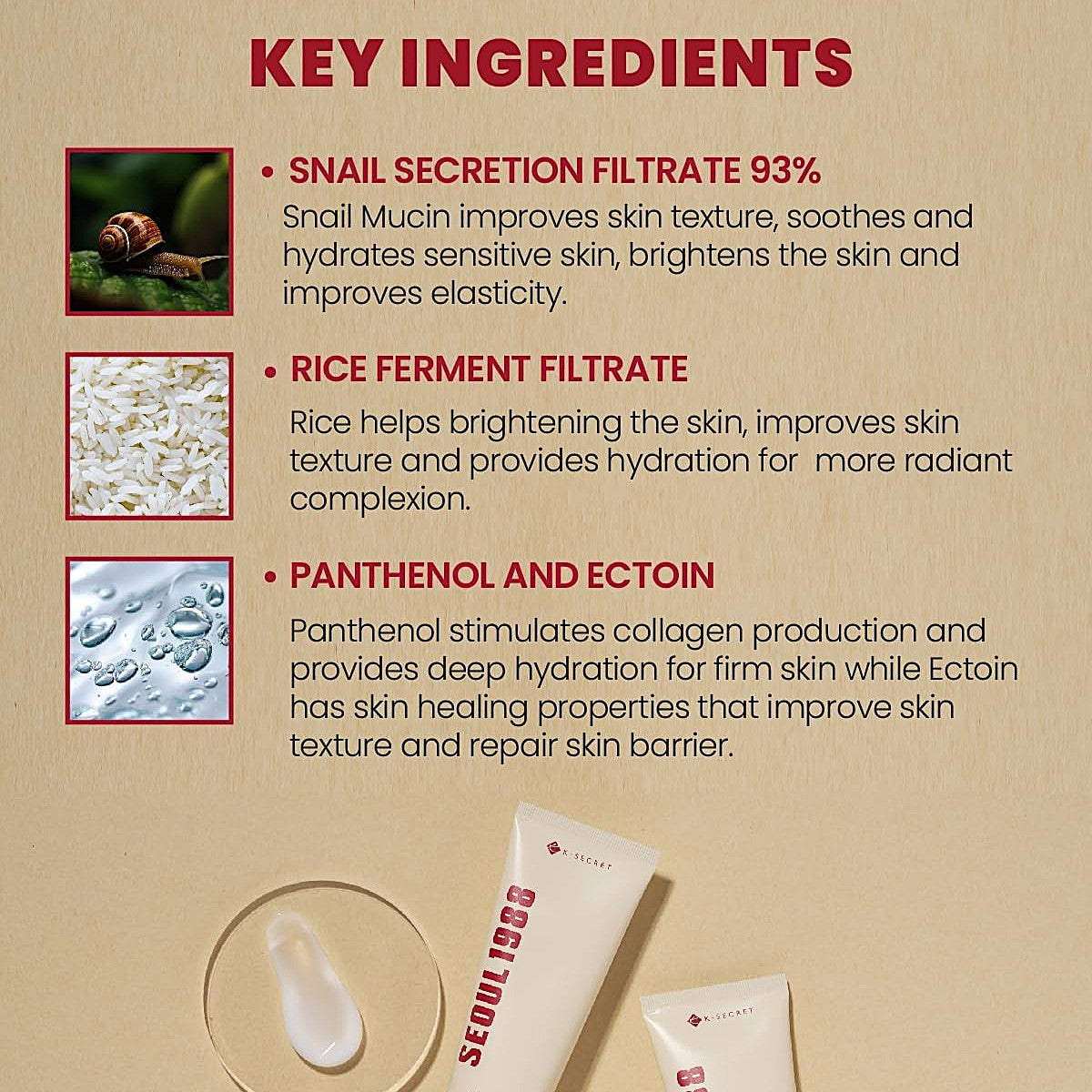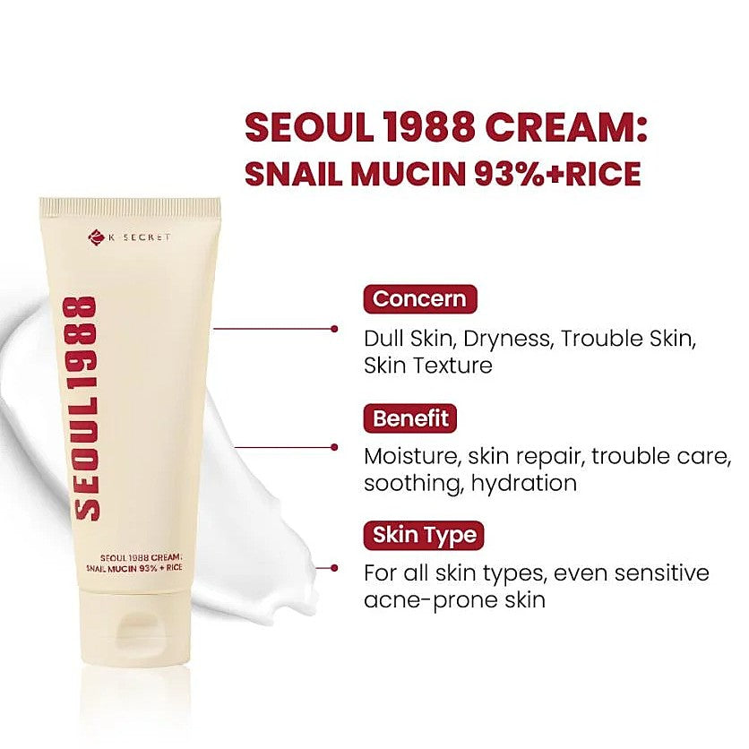 KSECRET SEOUL 1988 Cream : Snail Mucin 93% + Rice - 100ml