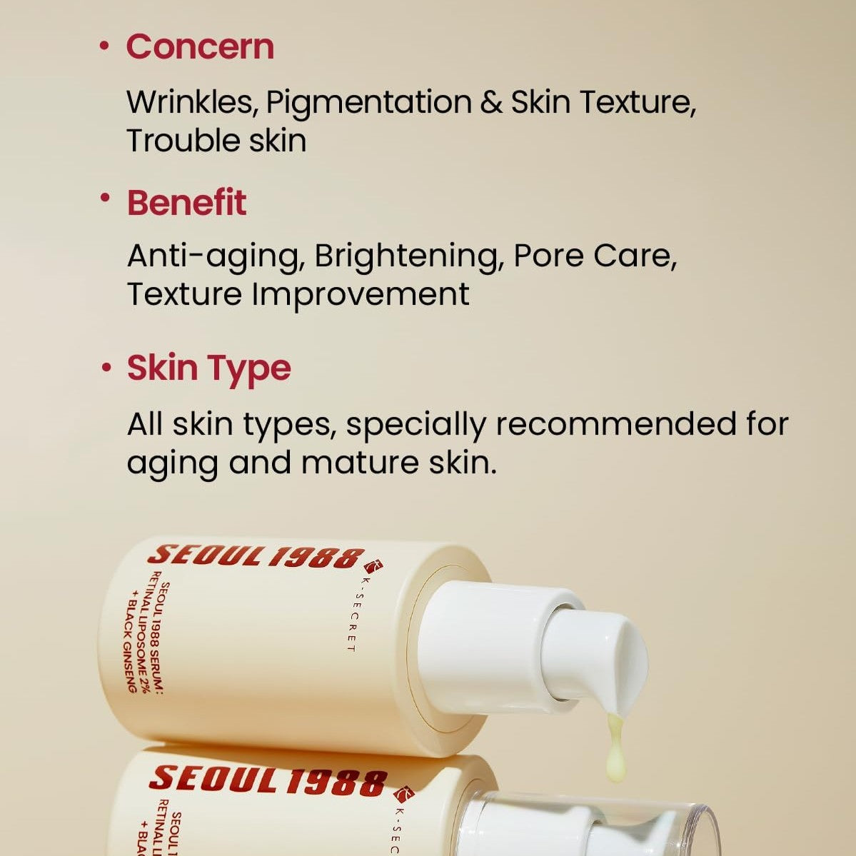 KSECRET SEOUL 1988 Serum : Retinal Liposome 2% + Black Ginseng - 30ml