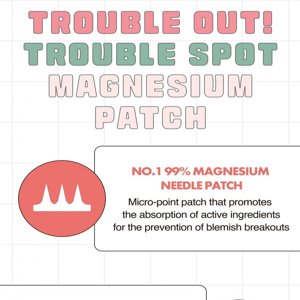 Lalarecipe Trouble Spot patch patches feature magnesium micro-point needles to efficiently penetrate the skin and prevent blemish breakouts. These micro carriers, with spikes measuring 0.1 mm thick and thinner than a hair strand, are highly effective for managing blemishes. Effective for 8 hours a go. Infused with soothing tea tree and calendula ingredients, these hypoallergenic patches have undergone skin irritation testing for a safe and worry-free experience.
