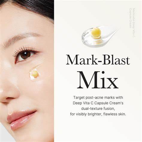Discover the revolutionary Deep Vita C Capsule Cream, a luxurious skincare solution that targets uneven skin tone and spots for a brighter, more radiant complexion. This customizable cream boasts a unique dual-texture formula, fusing a Vitamin Capsule cream with a transparent gel. Packed with potent ingredients like Sea Buckthorn Extract, Niacinamide, Pure Vitamin C, and our exclusive technology for maximum effectiveness, this luxurious cream eliminates oxidizing issues and delivers hydration and glow without irritation. With its customizable capsule-to-gel ratio, this light-textured cream is suitable for all skin types and absorbs easily for effortless daily use.