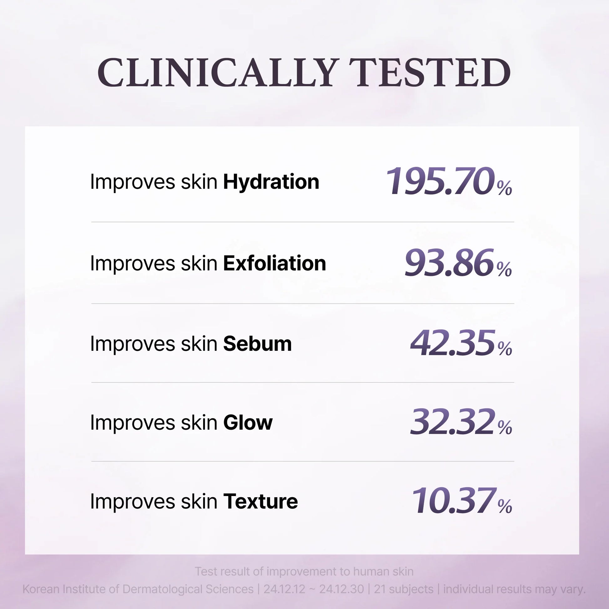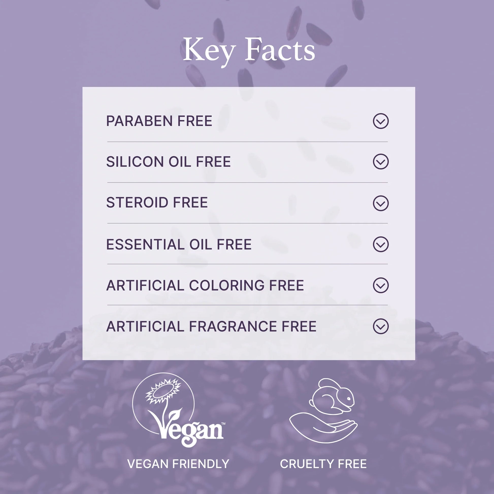 Experience the benefits of 100-day fermented Black Rice Reveals a deep, radiant glow. Sourced from Jindo, Korea, this black rice contains 2.4 times more anthocyanins than typical varieties. Through natural fermentation, anthocyanin levels increase by 126%, supporting enhanced skin protection, sebum control, and defense against oxidative stress.